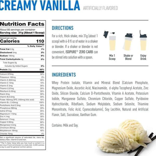 Isopure Zero Carb Proteína en Polvo Sabor Vainilla – 1.36 kg